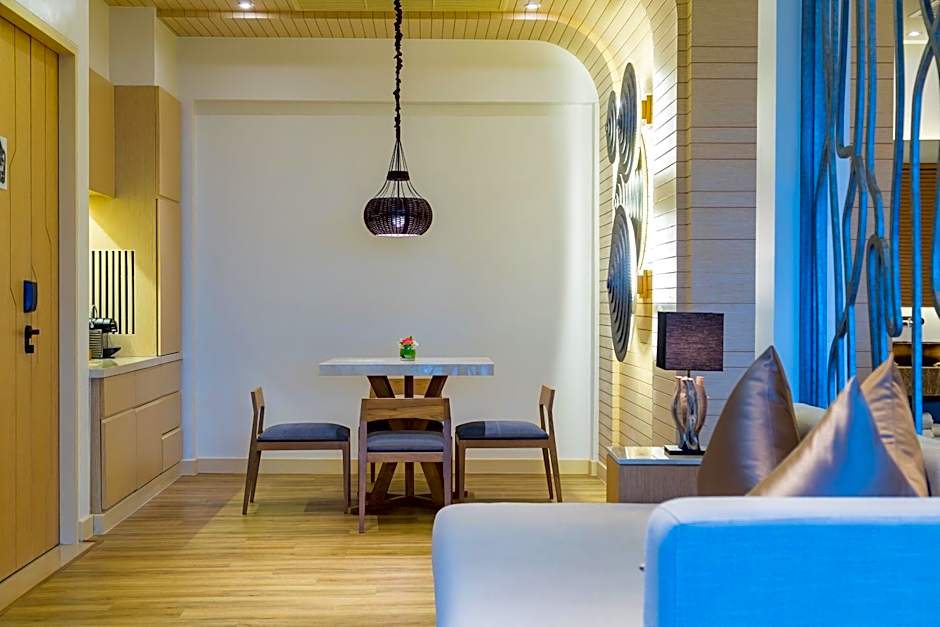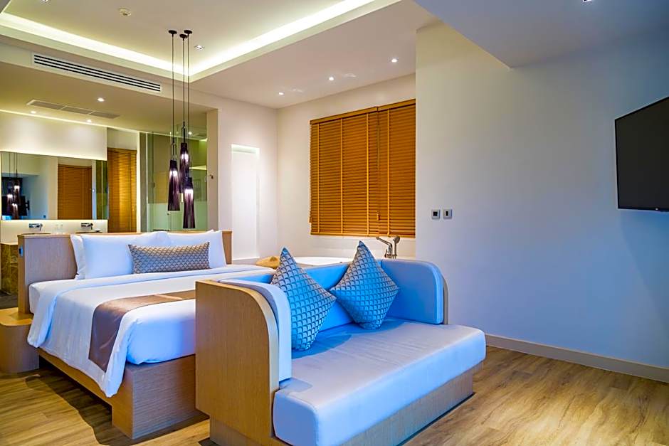 DELUXE POOL ACCESS is 517 square feet and includes either a king-size bed 150-183 width or 2 single beds 80-130 width plus balcony, extra beds on demand, desk, satellite tv , hairdryer, tea and coffee making facilities , safe, bathrobes, and slippers.