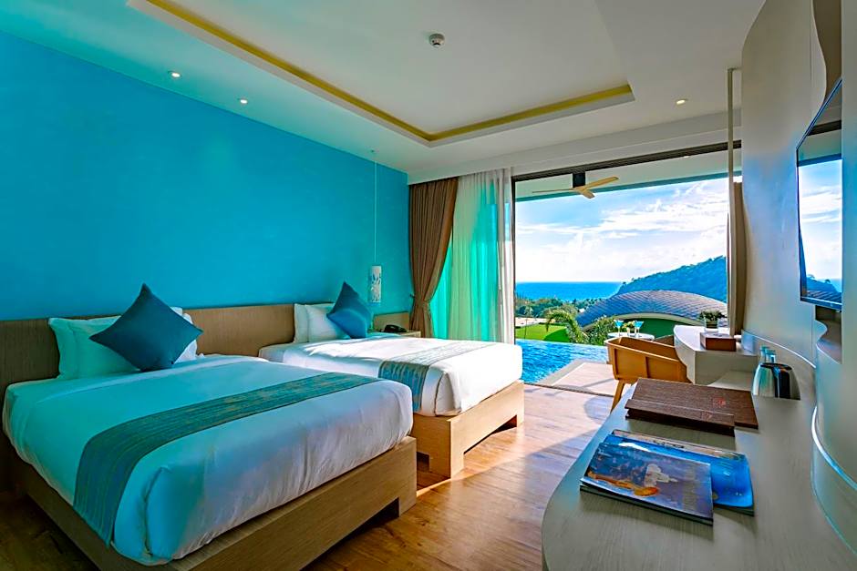 This double room's special features are the pool with a view and the hot tub. The spacious double room offers air conditioning, soundproof walls, a terrace with sea views as well as a private bathroom featuring a walk-in shower. The unit offers 3 beds.